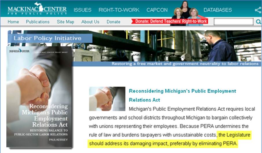 • The Mackinac Center works through the Legislature to weaken the MEA, giving it less political muscle. The fewer members it has, the fewer political dollars it can raise and the fewer bodies it can turn out in an election.