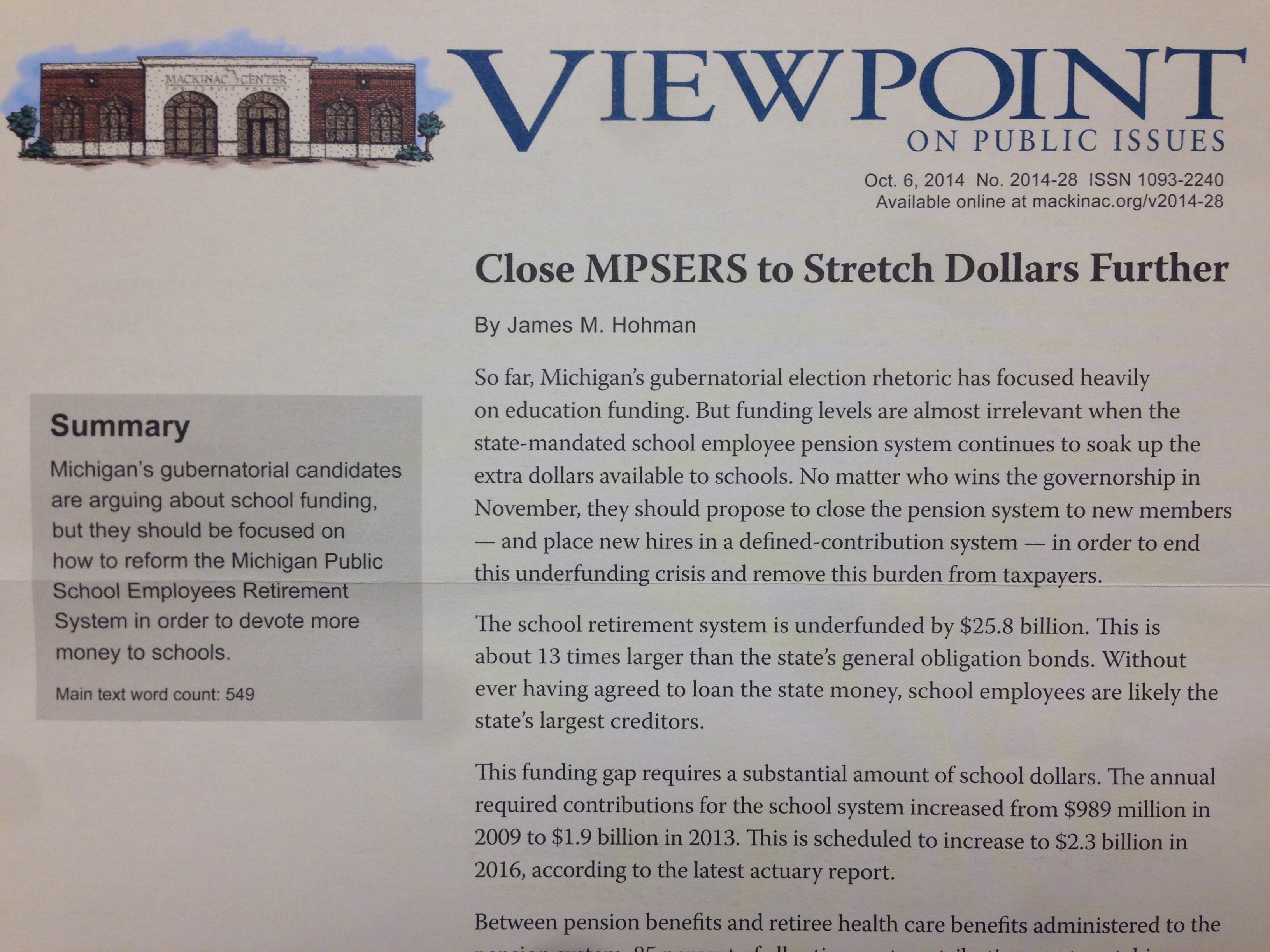 It’s time for the attorney general to look into the 501 status of this “non-profit”. It seems there are some clear violations of this tax code. Oh! That’s right, the attorney general IS pro-Mackinac Center. Silly me!