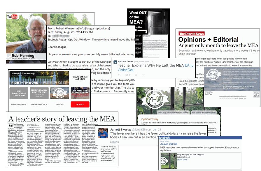 The Mackinac Center’s top summer priority is to convince MEA members to quit their union. And time is running out so the Center is blazing with all its guns. The long list of the strategies the Center has employed makes this plain. At last count, it has used: