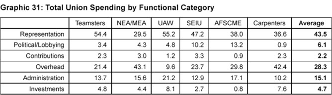 The spending listed above for “overhead” (43.1%) reflects MEA’s policy of maintaining UNISERV offices all over the state, bringing the union to its members. None of the other unions listed does this.